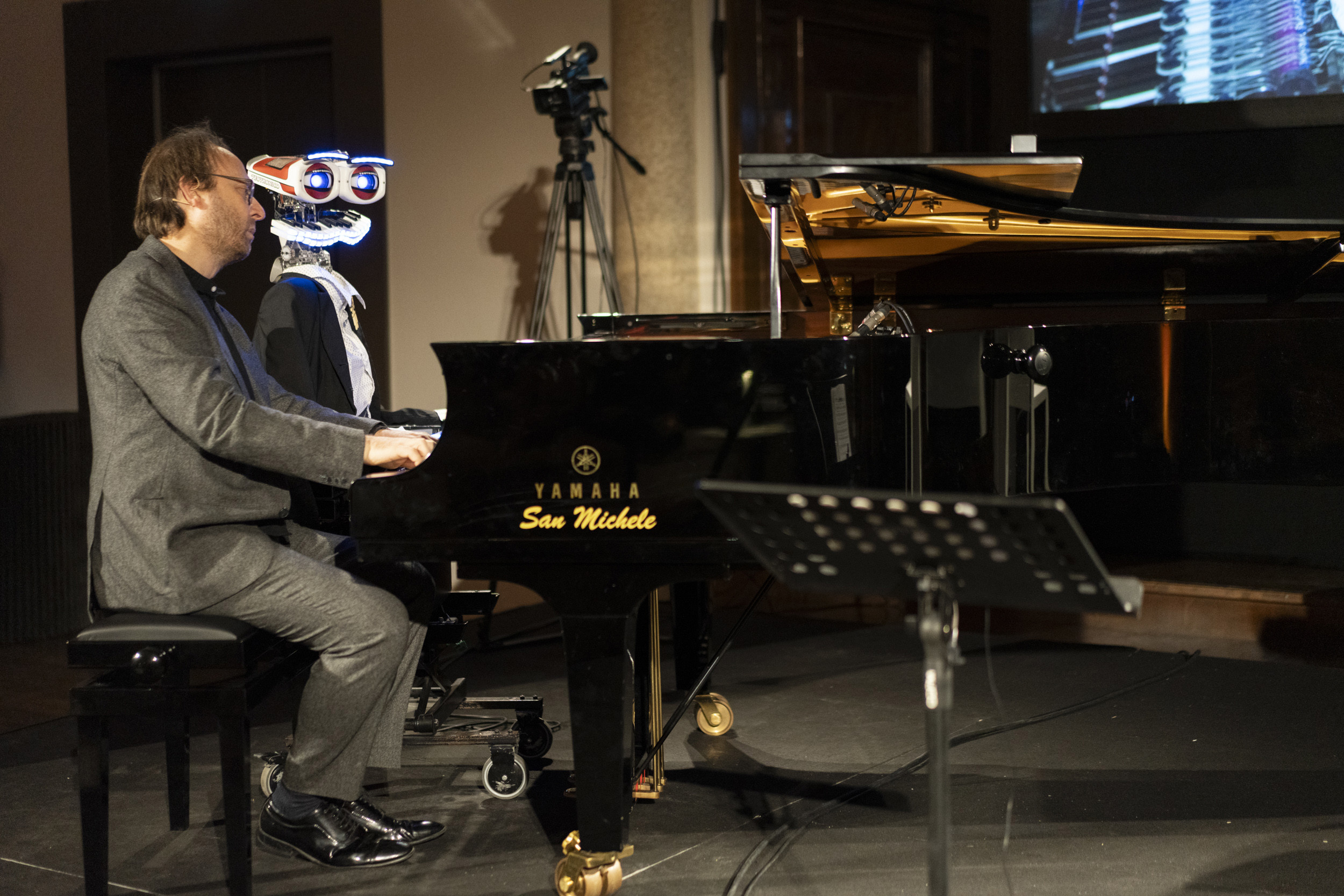 La nostra Amministratrice Delegata Francesca Gabrielli ha sottolineato il continuo impegno verso una ricerca innovativa e lo sviluppo di soluzioni ibride, senza mai dimenticare l'importanza del tocco umano. Le sue parole sono state seguite dall'originale performance del pianista Prosseda, che ha dialogato al pianoforte con un sorprendente robot Teotronico. Entrambi hanno suonato brani iconici, da componimenti di Chopin alla Marcia Turca, e il loro intermezzo musicale ha introdotto una profonda riflessione sull'interazione tra Intelligenza Artificiale e sensibilità umana, tecnologia e anima.