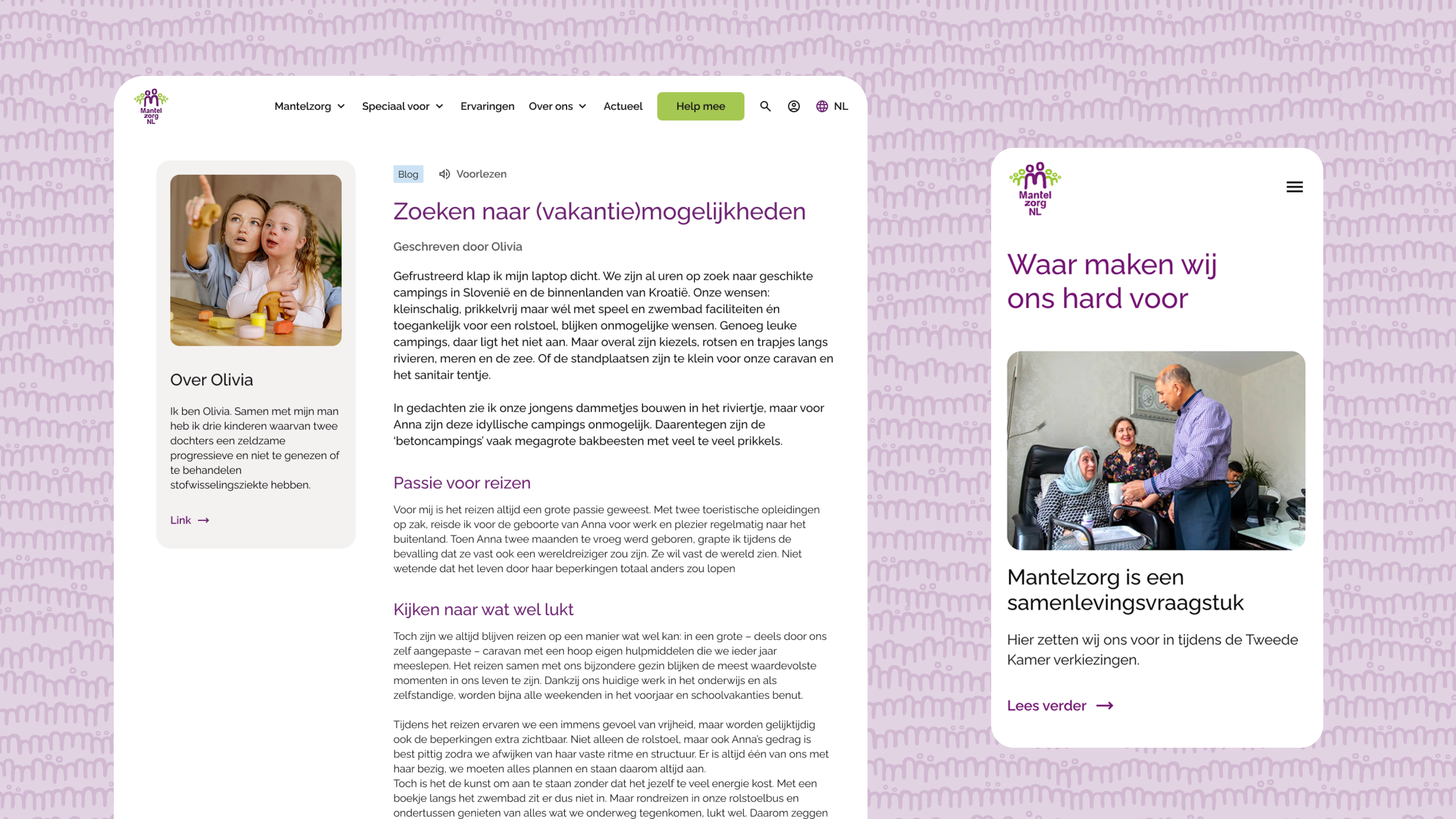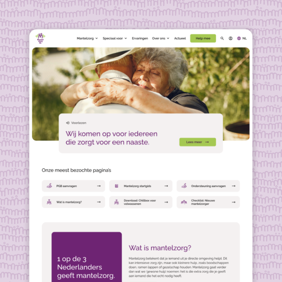 When caregivers recognize their own situation on the website, it builds trust in MantelzorgNL as the organization that truly represents them. This trust creates the foundation to clearly communicate what the organization stands for and how it works to improve the position of informal caregivers.