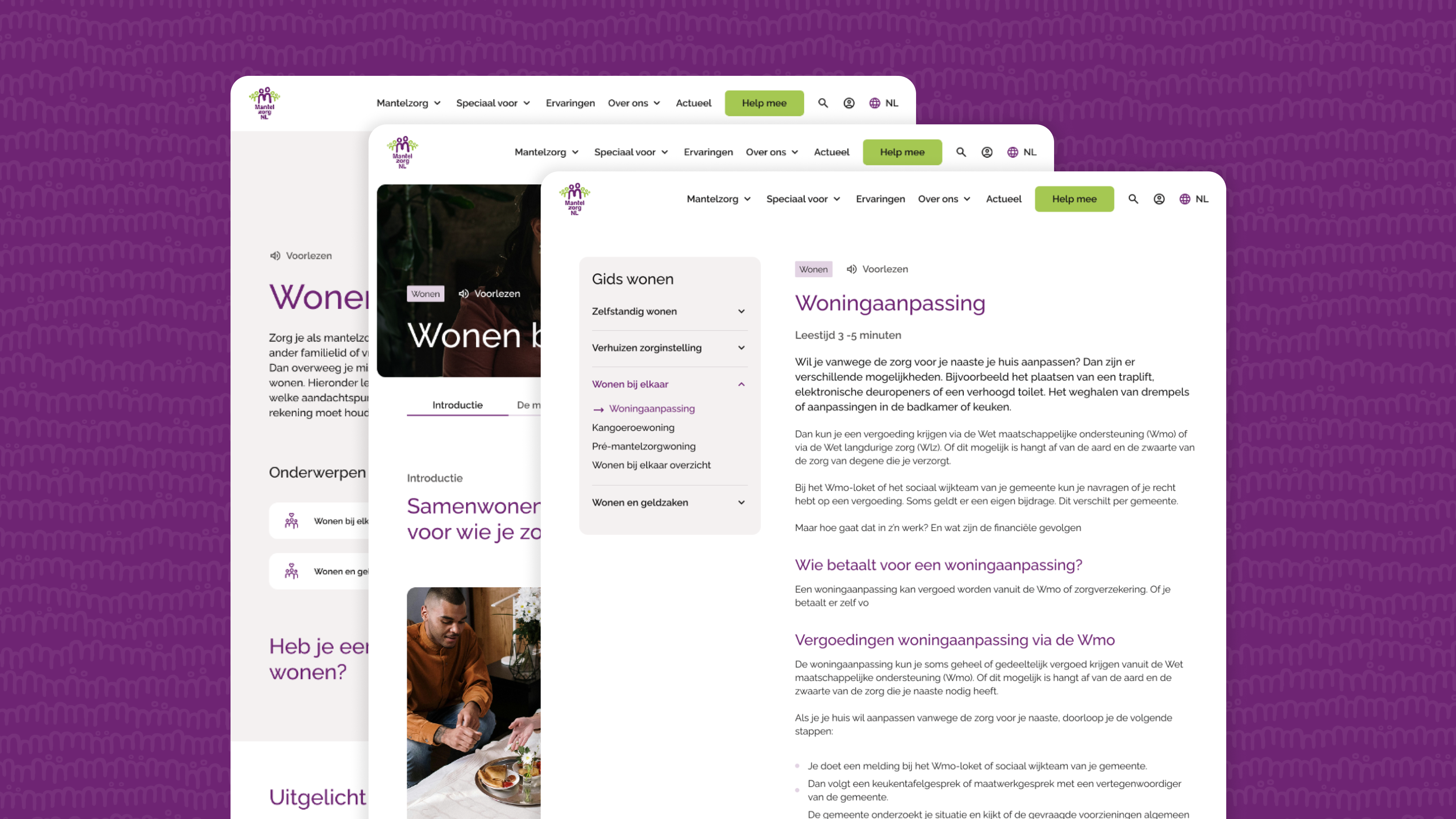 First, caregivers often search for help when time and energy are limited. In these busy and emotionally demanding situations, they look for guidance on topics such as laws and regulations, finances and combining care with work. On the existing website, however, information was fragmented and loosely structured, making it hard to quickly find the right information. As a result, visitors could leave with the impression that MantelzorgNL could not support them, even when the information they needed was available.