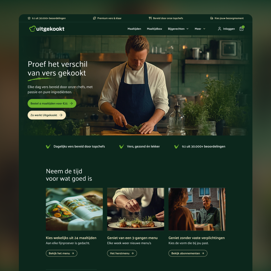 Uitgekookt delivers fresh, chef-prepared meals that customers can heat and enjoy at home. While the brand had built a strong position among older audiences, sustaining growth meant becoming just as relevant for younger households. To unlock this next phase of growth, Uitgekookt and Assist Digital Netherlands redesigned the customer experience from start to finish, shifting ready-made meals from a compromise to a choice for craftsmanship.